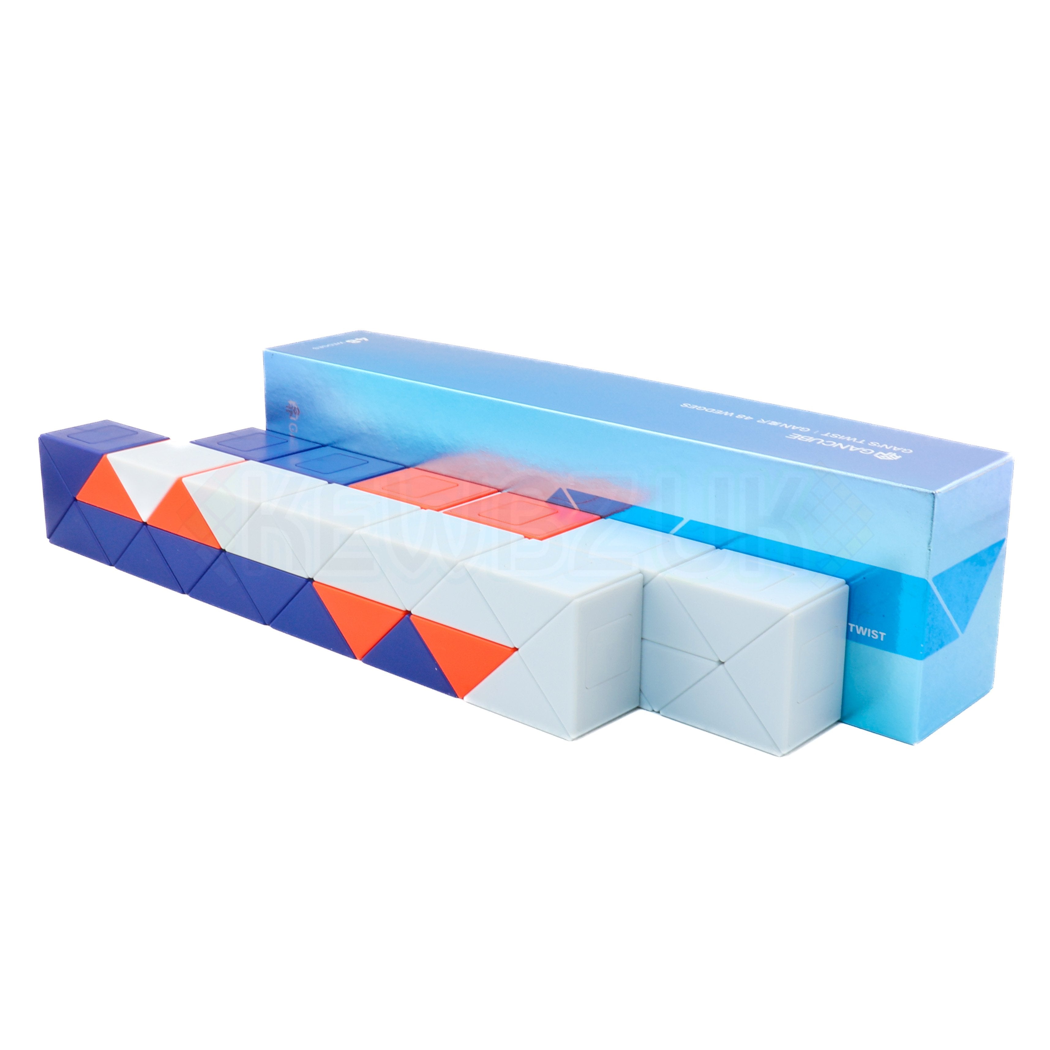 The GAN Snake features a new design (when it comes to Snake puzzles anyway). Each 'wedge' piece offers a button that allows the user to break apart the snake at the piece. Want to join 2 snakes together? Maybe even 3 or 10 snakes? That's easily done with the GAN Snake.