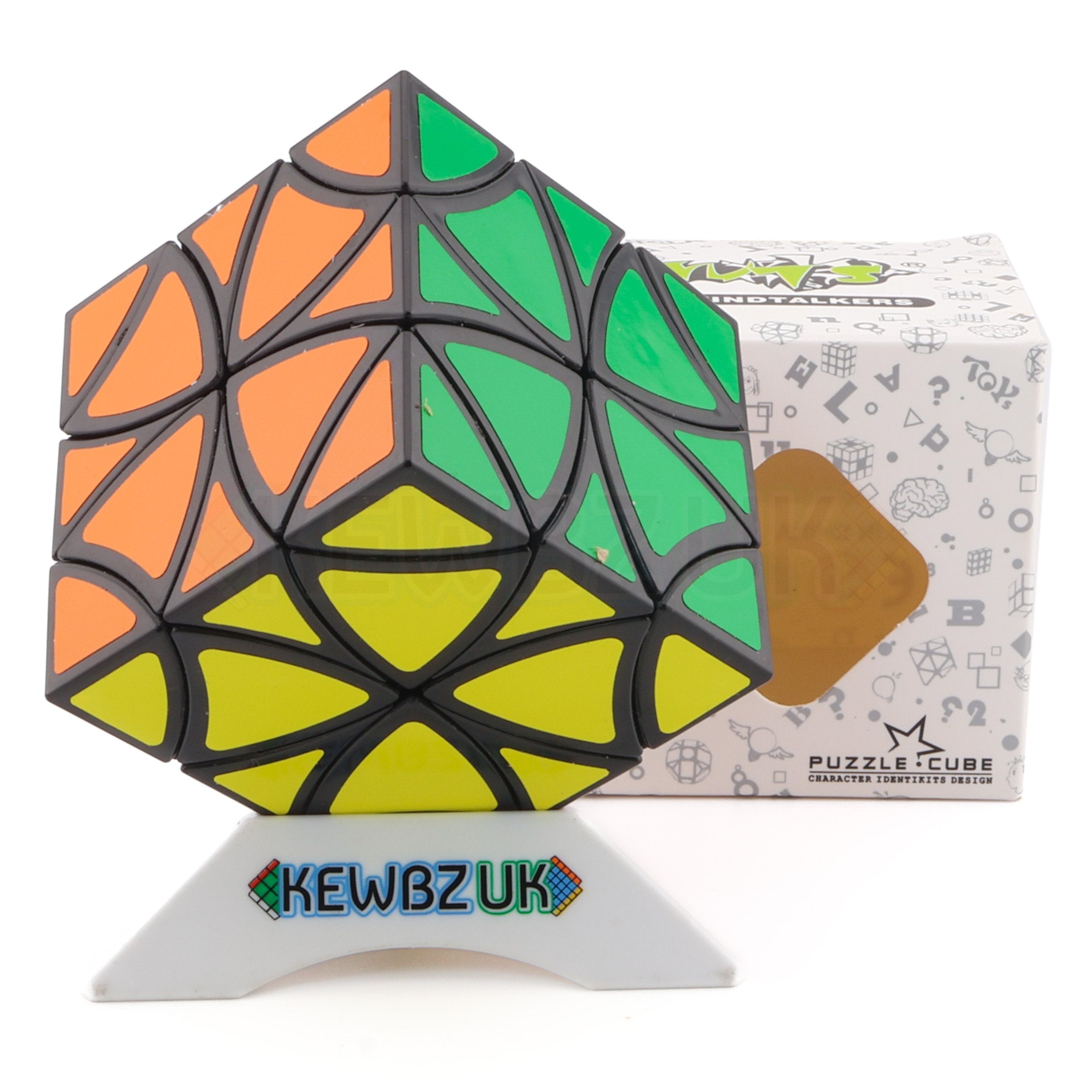 The LanLan Curvy Copter is based on the helicopter cube with hints of the QiYi Clover Cube too. The main difference is that the Curvy Copter offers curved axis of rotation. This cube is also known as the Butterfly.